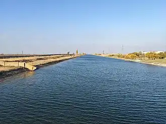 The Kakhovka Canal (Ukrainian: Каховський канал) is a canal in southern Ukraine connecting between the Dnipro river and the Sea of Azov. It has a total length of 130 kilometres (81 mi), and is a part of the Kakhovka Irrigation System that provides irrigation for farmlands in much of Kherson Oblast.[1]