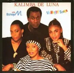 Kalimba de Luna – 16 Happy Songs is a compilation album by Boney M. released in late 1984. On the strength of two carbon-copy cover versions, "Kalimba de Luna" (Germany #17, 22 weeks - originally by Tony Esposito) and "Happy Song" (Germany #7, 16 weeks - original version by Baby's Gang) which gave Boney M. their first Top 20 hits in Germany in three years, this compilation was rush-released in November 1984. Besides the 12" versions of the two singles, the latter marking Bobby Farrell's return to the band but neither featuring Liz Mitchell or Marcia Barrett, the compilation includes 3-minute edits of tracks from albums Boonoonoonoos and Ten Thousand Lightyears as well as non-album singles "Children Of Paradise"/"Gadda Da Vida" (1980), "Felicidad (Margherita)" (1981), "Going Back West" (1982) and "Jambo - Hakuna Matata (No Problems)" (1983), as well as a new remix of "Calendar Song" from the Oceans Of Fantasy album. Just like in the case of 1980 compilation The Magic Of Boney M. - 20 Golden Hits, many of these edits were to re-surface on a number of hits compilations in the future, the latest being 2007 Sony-BMG release Hit Collection.