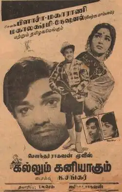 Kallum Kaniyagum (transl. Even the stone will become a fruit) is a 1968 Indian Tamil-language film, directed by K. Shankar and produced by T. M. Soundararajan and A. L. Raghavan. The film stars T. M. Soundararajan, Rajasree, A. L. Raghavan and M. N. Rajam.[1][2][3]
