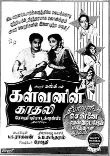 Kalvanin Kadhali (transl. The Thief's Lover) is a 1955 Indian Tamil-language romantic crime film directed by V. S. Raghavan and written by S. D. Sundharam. Starring Sivaji Ganesan and P. Bhanumathi, it is based on the novel of the same name by Kalki Krishnamurthy. The film was released on 13 November 1955 and completed a theatrical run of 80 days.