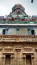 Tirugnana Sambandar, a 7th-century Tamil Shaivite poet, venerated Kalyanasundaresar in eleven verses in Tevaram, compiled as the Second Tirumurai.[8] Appar, a contemporary of Sambandar, also venerated Kalyanasundaresar in ten verses in Tevaram, compiled as the Sixth Tirumurai.[9] As the temple is revered in Tevaram, it is classified as Paadal Petra Sthalam, one of the 276 temples mentioned in the Saiva canon. The temple is counted as one of the temples built on the banks of River Kaveri. It is located on the banks of Kudamurutti, a tributary of river Kaveri.[10] The temple is counted as the 20th temple on the southern bank of Cauvery that are recorded in the canon.