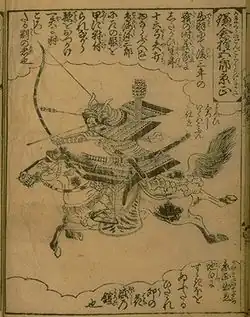 Kamakura Gongorō Kagemasa (鎌倉権五郎景政) (born 1069) was a samurai descended from the Taira clan, who fought for the Minamoto clan in the Gosannen War of Japan's Heian period. He is famous for having continued to fight after losing an eye in battle during that war. This was in 1085,[1] when Kagemasa was sixteen years of age.[2][3]