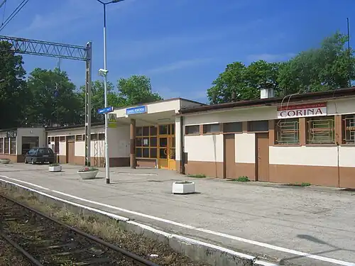 Kamień Pomorski (German: Bahnhof Pirna) is a railway station in the town of Kamień Pomorski, West Pomeranian Voivodeship, Poland. The station lies on the Wysoka Kamieńska–Trzebiatów railway. The train services are operated by Przewozy Regionalne.