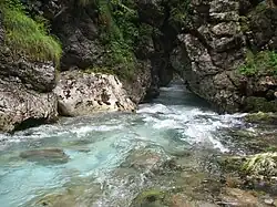 The Kamnik Bistrica[2][3][4][5] (Slovene: Kamniška Bistrica, pronounced [ˈkáːmniʃka ˈbíːstritsa])[6] is an Alpine river in northern Slovenia, a left tributary of the Sava River. It springs from the Kamnik Alps (part of the Southern Limestone Alps) near the border with Austria. It is 33 km (21 mi) long.[1] The Kamnik Bistrica flows through the town of Kamnik, where it is fed by the Nevljica River. It flows into the Sava south of Videm, about 10 km east of Ljubljana.