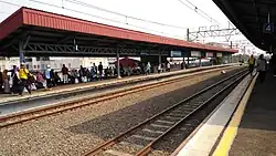 Kampung Bandan Station (KPB)[1] is a railway station located in North Jakarta. This station is located close to WTC Mangga Dua. The station has elevated tracks with embankment and ground-level tracks. The elevated level tracks are used by trains between Jakarta Kota and Tanjung Priuk, as the Tanjung Priuk Line. The ground tracks are used by trains going to Cikarang as the Cikarang Loop Line. This station has been hit by floods numerous times.
