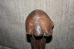 Usually cut from a hardwood type of iron wood, gaiac or kohu[1] they were used for war. Like all the Pacific clubs, their forms were of a very wide variety and specific to each country and each purpose.[2] They were found in phallic form, but also in the form of a fungus or a bird’s beak.[3] Their striking head consisted of a root knot.[4] These weapons were originally decorated with plants, human hair, or cloths, and were wielded with one or two hands.[5]