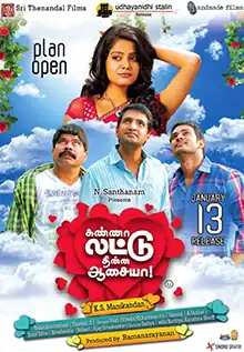 Kanna Laddu Thinna Aasaiya (transl. My dear, would you like to eat a laddu?), also known by the initialism KLTA, is a 2013 Indian Tamil-language romantic comedy film directed by K. S. Manikandan in his debut.[3] The film stars Santhanam, Srinivasan, newcomer Sethu and Vishakha. Based on the 1981 Tamil Indru Poi Naalai Vaa by K. Bhagyaraj, it revolves around three friends who fall for the same girl, who has just moved into their neighbourhood.