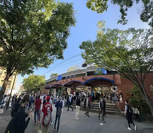 In fiscal 2019, an average of 55,299 passengers daily boarded the JR line from this station.[1] During the same period, an additional 23,299 passengers (boarding passengers only) made use of this station for the Blue Line.[2]