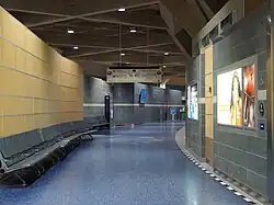A $258 million terminal renovation was completed in November 2004. Improvements included, amongst other things, increasing the size of each structural bay to provide larger spaces for vestibules, concessions, retail and public seating as well as new bathrooms inside security.[15] Following the renovations, all three terminals included blue terrazzo floors.[16] In May 2007, the final portion of the project, a new rental car facility and additional art fixtures, were completed.