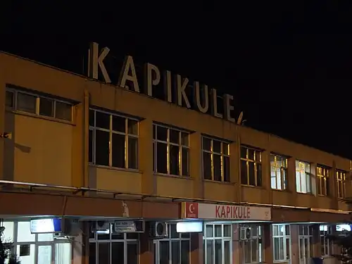 Kapıkule station (Turkish: Kapıkule garı), is the westernmost railway station in Turkey. It is located towards the north of Kapıkule, the frontier town on the Turkey/Bulgaria border. Kapıkule is a border station and the terminus for domestic trains in European Turkey. Only the Bosphorus Express to Bucharest and the Balkan Express to Belgrade continue across the border into Bulgaria. The station is the busier of the 2 operational border stations of the Turkish State Railways in Turkey, the other one being Kapıköy on the border with Iran.