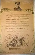 During Denikin occupation some citizens of the village were killed for supporting Ukrainian Republic and soviet government and others took arms and began to fight with forces of Denikin army for freedom and democracy in the region under yellow-blue and red flags or even flags yellow-blue from one side and red from another (see book of Kozub).