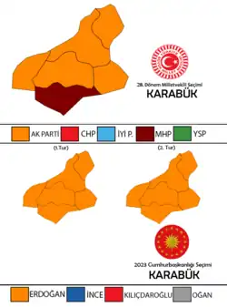 - ^ "CUMHURBAŞKANI VE 28.DÖNEM MİLLETVEKİLİ GENEL SEÇİMİ KARABÜK İLİ SEÇİM ÇEVRESİ" (PDF). Retrieved 10 November 2023.