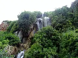 Karacaoğlan River (or Karacaoğlan Creek, Turkish: Karacaoğlan Deresi) is a small river in Erdemli ilçe (district) of Mersin Province, Turkey. Its headwaters are around Tepeköy in the Toros Mountains. It has a number of names depending on the villages around such as; Şahna, Müğlü, Dikiner, Sandal, Kargıpınarı (or Gilindire; the former name of Kargıpınarı).[1][2] In the lower reaches in Çukurova (Cilician) plains it is used for irrigation . During the post-rainy seasons its excess water flows over the cliffs to create a waterfall to the east of Elvanlı. The waterfall is a popular excursion area for Mersin citizens.[3] The river then flows between the towns of Kargıpınarı and Çeşmeli and discharges to Mediterranean Sea at 36°39′51″N 34°25′42″E / 36.66417°N 34.42833°E.