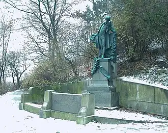 A statue was erected in his honor in Petřín Park, Prague.[2] In 1937 a biographical film, Karel Hynek Mácha, was made by Zet Molas. Lake Mácha (Czech: Máchovo jezero) was named after him in 1961.