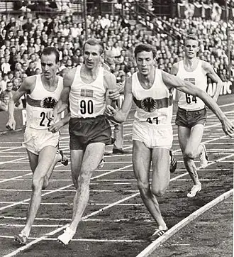 ![]() Olofsson flanked by Harald Norpoth and Bodo Tümmler in 1964 | |