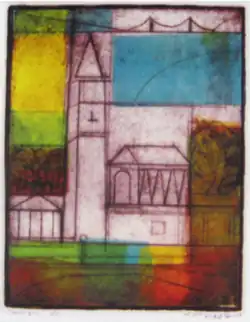 In addition to his wide record of painting exhibitions, Karl Kasten is known worldwide as a master printer. In 1950, he established the Printmaking program and a course in Materials and Techniques at UC Berkeley. Kasten's aim and underlying credo with the courses was that printmaking could equal traditional painting through creative exploration. After viewing his colorful etchings of the 1950s, art critic Alfred Frankenstein observed that Kasten had "discovered a new softness, liquidity, and fluency of effect in the bitten plate and with this a new way of expressing the modern artist's preoccupation with space and movement." Susan Landauer recognized Kasten in her monograph Breaking Type: The Art of Karl Kasten, with one or two exceptions 'there were few examples of serious printmaking among Abstract Expressionists in New York.' Kasten has also been recognized for his printing accomplishments with the 1997 Distinguished Artist award of the California Society of Printmakers, the Humanities Research Fellowship and Tamarind Lithography Fellowship. David Acton refers to Kasten succinctly as "the dean of Bay Area printmaking."[4]