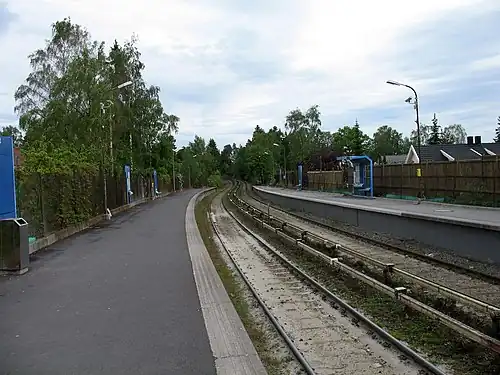 Karlsrud is a station on Lambertseter Line (line 4) of the Oslo Metro, on the north side of Lambertseter. The station is between Brattlikollen and Lambertseter, 8.6 kilometers (5.3 mi) from Stortinget. The station was opened on 28 April 1957 as a tramway and 22 May 1966 as a metro. The station's architect was Guttorm Bruskeland.[1]