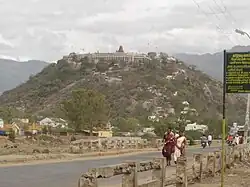 As per Kanda Puranam, sage Narada once visited Shiva at Kailasha and presented him with a Gnana palam (fruit of knowledge).[28] This fruit is generally regarded as a mango.[29] Shiva expressed his intention of dividing the fruit between his two sons, Ganesha and Kartikeya, but Narada counseled that the fruit could not be divided. So, it was decided to award the fruit to whomsoever first circled the world thrice. Accepting the challenge, Kartikeya started his journey around the globe atop his peacock mount. However, Ganesha surmised that the world was no more than his parents Shiva and Shakti combined, circumambulated them, and won the fruit. When Kartikeya returned, he was furious to learn that his efforts had been in vain, and felt cheated. He discarded all his material belongings and left Kailasha to take up abode in the Palani Hills as a hermit.[30][31] According to Fred Clothey, Kartikeya did this out of a felt need to mature from boyhood.[32] According to Kamil Zvelebil, Kartikeya represents the actual fruit of wisdom for his devotees rather than any physical fruit such as a mango or a pomegranate.[33]