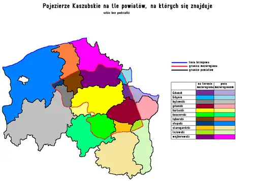 The mesoregion is able to be split in the following river basins: Radunia Reda, Łeba, Motława, Wierzyca, Słupia, and Łupawa. In the division made by Augustowski, and by Kondracki, this region still includes the Wda and Brda river, which do not belong to mesoregion.[6]
