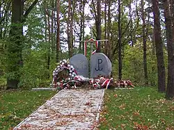 Between 1940 and 1944, during the Second World War, while under the German occupation, in Kawęczyn, soldiers of Nazi Germany had executed at least several dozen people, which were then buried there in mass graves. Among the victims were members of the Zawisza group of the Gray Ranks, and major Roman Węgrowicz, officer of the Home Army.[10] In 1944, the brick factory in Kawęczyn was destroyed in the arial bombardment.[7]