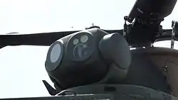 A roof-mounted electro-optical sensor turret is located forward of the rotor head, containing a forward looking infrared sensor, a laser rangefinder and a colour TV camera. A total of four hardpoints are fitted under the rotorcraft's stub wings to allow the carriage of external stores, these have a total capacity of 132 kg (291 lb). The outer pylons can carry four Type 91 guided surface-to-air missiles, while the inner pylons are capable of carrying external fuel tanks for additional range or endurance.[5] No additional armament is typically fitted.[5]