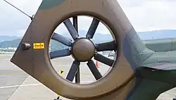 The OH-1 is powered by a pair of Mitsubishi TS1 turboshaft engines, equipped with Full Authority Digital Engine Controls (FADEC), which drives a four-blade composite main rotor with a bearingless rotor hub along with a Fenestron-type anti-torque tail rotor (an enclosed tail-fan unit). The Fenestron uses eight asymmetrically spaced blades to reduce both noise and vibration.[1][5]