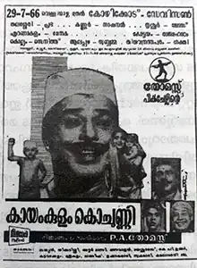 Kayamkulam Kochunni is a 1966 Indian Malayalam-language period drama film written, produced and directed by P. A. Thomas. Dialogues were written by Jagathy N. K. Achary. It is based on the life of the 19th century thief Kayamkulam Kochunni, who is known for stealing from rich and giving to poor. The film stars Sathyan, Adoor Bhasi and Ushakumari and K. J. Yesudas. The soundtrack was composed by B. A. Chidambaranath. Kayamkulam Kochunni released on 29 July 1966 was a commercial success at the box office. Its sequel, Kaayamkulam Kochunniyude Makan, was released in 1976.[1]