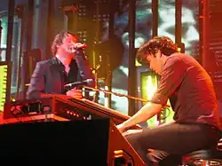 Keane are known for using keyboards as the lead instrument instead of guitar, differentiating them from most other rock bands.[8] The inclusion of a distorted piano effect in 2006 and various synthesisers was a common feature in their music[9][10] which developed on the second and third albums. In May 2008, both Hopes and Fears (number 13) and Under the Iron Sea (number 8) were voted by readers of Q magazine as among the best British albums ever.[11] In 2009, Hopes and Fears was listed as the ninth best-selling album of the 2000s decade in the UK.[12] Keane have sold over 13 million records worldwide.[13]