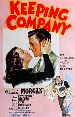 Keeping Company is a 1940 American drama film directed by S. Sylvan Simon and starring Frank Morgan, Ann Rutherford and Irene Rich.[1] Morgan plays a real estate broker with three daughters who all have their own problems. The film was produced by Metro-Goldwyn-Mayer and was followed by a sequel This Time for Keeps (1942).[2]