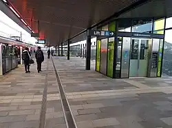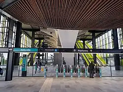 Kellyville metro station is an elevated station on the Metro North West & Bankstown Line, as part of the Sydney Metro network. The station was built by Impregilo-Salini and Metro Trains Sydney for Transport for NSW, and is situated along Samantha Riley Drive, Kellyville, in Sydney, Australia. Train services from the station run to Tallawong and Sydenham, with a journey time to Chatswood of around 33 minutes and to Sydenham in around 56 minutes. As the New South Wales Government's Sydney's Rail Future strategy is delivered over the next 20 years, services have been extended to the Sydney central business district (CBD) and towards Bankstown in late 2025. Kellyville Station opened on 26 May 2019 as part of the Sydney Metro Northwest line from Chatswood to Tallawong, which has since been extended down towards Sydenham via the City.[4][5]