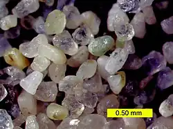 The dunes are composed predominantly of light-colored quartz and feldspar, most likely eroded from the granitics of the San Bernardino Mountains to the southwest. Magnetite and amphibole can also be found, often accumulating at the dune crests.
