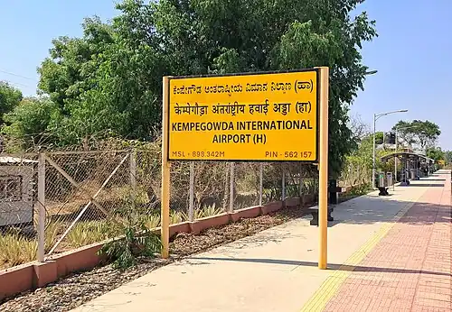 Kempegowda International Airport Halt Kempēgauḍa Antarāṣṭrīya Vimāna Nildāṇa Nilugaḍe Kempegauda Antarraashtreey Havaee Adda Padaav | |||||||||||