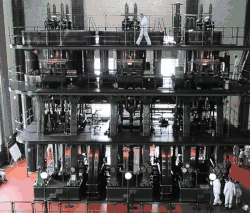 Engine No 6, also called The Sir William Prescott, has been restored to running order and is the largest fully operational triple-expansion steam engine in the world.[4] It may be seen in steam on various weekends throughout the year, and as a static display every Sunday between March and November.[5] The other engine, Engine No 7, is named Bessie after Sir Prescott's wife.[4] The engine house also houses two steam turbine water pumps. One of these steam turbines has now been motorised to demonstrate its inner workings.[6]