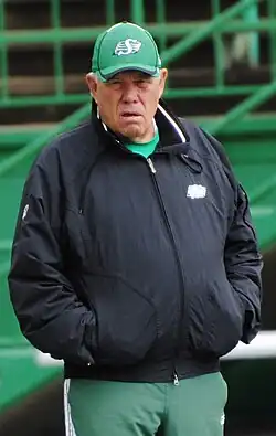 Ken Miller (October 15, 1941 – August 21, 2024) was an American football coach. He last served as an offensive consultant for the Montreal Alouettes of the Canadian Football League (CFL).[1] He previously served in the league as head coach and vice president of football operations for the Saskatchewan Roughriders. He served as the Roughriders head coach between 2008 and 2010, leading the team to appearances in the Grey Cup in 2009 and 2010. Miller returned as head coach of the Roughriders on August 19, 2011, after the firing of Greg Marshall after a 1–7 start to the 2011 CFL season.[2] Miller was the club's offensive coordinator under head coach Kent Austin when they captured the 95th Grey Cup in 2007. He had previously served on the coaching staffs of the Toronto Argonauts, University of Redlands, Dickinson State, and Yucaipa High School.
