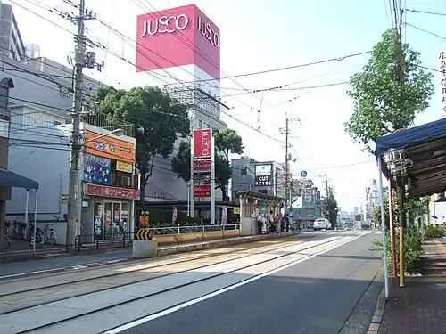Kenbyōin-mae is a Hiroden station (tram stop) on Hiroden Ujina Line, located in Minami-ku, Hiroshima.