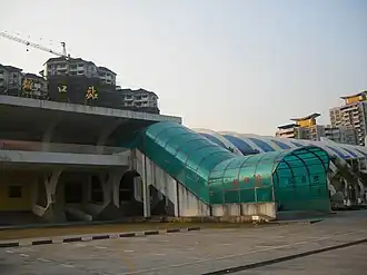 Kengkou station (Chinese: 坑口站; Jyutping: haang1hau2 zaam6; Cantonese Yale: Hāangháu Jaahm) is a station of Line 1 of the Guangzhou Metro. It started operations on 28 June 1997. It was located at the ground level of the junction of Huadi Avenue Middle [1] and Longxi Avenue [2] in Fangcun, Liwan District. It is adjacent to Fangcun Coach Station (Chinese: 芳村客运站), the transportation hub for the western area of the Pearl River Delta.[3][4]