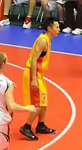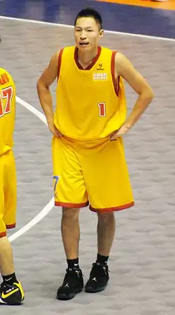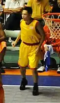 Kenichi Takahashi (高橋 憲一, Takahashi Ken'ichi; born December 22, 1980), nicknamed Shocho, is a former Japanese professional basketball player and served for Akita Northern Happinets of the B.League as the ambassador.[1] Takahashi is currently the instructor for Toreiku Katagami.[2] He was selected by the Sendai 89ers with the third overall pick in the 2006 bj League draft. He has played for the four Tohoku clubs of the bj league. In October 2015 he became a one-day honorary police chief at the Akita Higashi Police Station. Since then a police officer salute has become popular among Akita's boosters.[3][4] Takahashi studies NBA to improve his game,[5] and he is an Air Jordan collector.[6] His retirement memorial game was held at Akita Prefectural Gymnasium on October 29, 2017.[7][8]