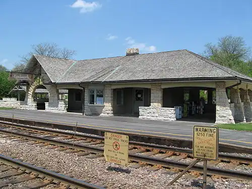 The station was built in 1891 by the Chicago and North Western Railway to a design by architect Franklin Pierce Burnham of the firm Edbrooke and Burnham.[2]