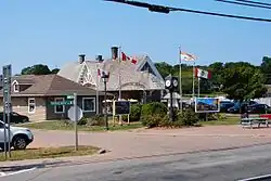The area was first known as Five Lanes End, as roads from five different communities converged at the point. It was renamed Barrett's Cross in 1824 after an early settler who established an inn in the area. In 1862, the town was renamed after Kensington Palace in London and it became a town after the Prince Edward Island Railway's mainline from Charlottetown to Summerside curved through the community. The town's former railyards are now rehabilitated as a tourist venue, with the former Kensington Railway Station designed by architect Charles Benjamin Chappell[2] designated a National Historic Site of Canada in 1976.[3]