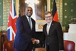 - ^ Lammy, David [@DavidLammy] (17 July 2025). "The UK-Germany Kensington Treaty signed today is historic and the first of its kind. It will help shape Europe's future for the next generation – safeguarding our security, driving growth, and facing down the threats we face together" (Tweet). Retrieved 17 July 2025 – via Twitter.