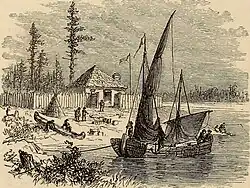 Before European colonization, Kent Island was inhabited by Native Americans for nearly 12,000 years.[4] The island was inhabited by the Matapeake people, members of the Algonquian nation whom the Matapeake area of Kent Island is named. Other tribes that inhabited the area and often visited the island included the Ozinie tribe. The Matapeake people referred to the island as Monoponson in their language.[5] During the 16th and 17th centuries, early explorers of the Chesapeake Bay, including Captain John Smith (who had named the area "Winstons Iles"[6][7]), were the first Europeans to see Kent Island; however, it wasn't until August 1631 that the island became an English settlement. At that time, William Claiborne, a resident of Jamestown, Virginia, founded a settlement near the southern end of the island for the purpose of trading with Native Americans and named the land "the Isle of Kent" after his birthplace of Kent, England.
