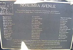 The Kentucky Memorial Hall, in 2008, installed a memorial plaque at the Noalimba Avenue of Honour dedicated to the original soldier settlers and those servicemen and women from the district who enlisted in subsequent conflicts.