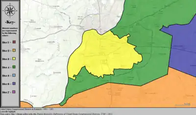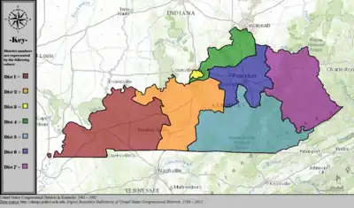 Table of United States congressional district boundary maps in the State of Kentucky, presented chronologically.[4] All redistricting events that took place in Kentucky between 1973 and 2013 are shown.
