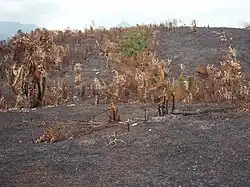 Slash-and-burn agriculture and overharvesting of charcoal and cooking wood have led to a serious crisis of deforestation in Madagascar. The land has become barren, making droughts worse and compounding seasonal famine conditions.[2]