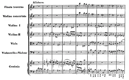 Scoring: harpsichord I/II solo, violin I/II, viola, continuo (cello, violone):[47]