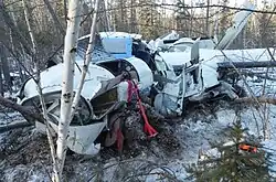 During approach to runway 04 at Nelkan airport, the aircraft suddenly lost speed, rolled 180 degrees to the left, and crashed into a forest 2 kilometres (1.2 mi; 1.1 nmi) from the runway. Both pilots (who were also the only crew members on board) and four of the five passengers on board were killed. There were no fatalities on the ground.[1]