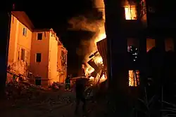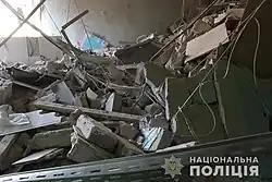 The missile strike on dormitories in Kharkiv was performed by Russian aviation with a series of missiles in the evening of 17 August and in the morning of 18 August 2022.[5] This became one of the largest attacks on Kharkiv[6] and one of the most tragic nights of the city.[7] The impact killed 25 people[1] including an 11-year old boy.[2] 44[3][8] were injured (including three children[4]).