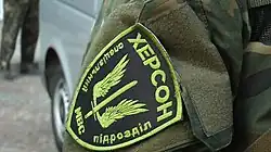 The Kherson Rifle Battalion[1] is a Rifle Battalion of the Special Tasks Patrol Police subordinated to Ministry of Internal Affairs of Ukraine. The company is based in Kherson. It was established in 2014 in the wake of the War in Donbass and has, since then seen regular combat on the frontlines.