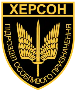 It was established in May 2014 in Kherson as a battalion was composed of 300 personnel in 6 platoons of 50 personnel each and Oleksandr Gubarev was appointed as its commander.[2] On 19 August 2014, 50 soldiers of the battalion went to the ATO zone.[3] On the morning of 25 August 2014, Vyacheslav Vlasenko, the commander of Donbas Battalion, summoned the commanders of Myrotvorets and Kherson battalions to a meeting. The vehicle of Kherson battalion commander, Storcheus Ruslan Oleksandrovych was ambushed on the way resulting in his death[4][5][6][7] and the death of his driver, Oleg Anatoliyovych Peshkov.[8] The Battalion, now without a commander, temporarily came under the command of Semen Semenchenko.[9] On 26 August 2014, a soldier of the Battalion (Maksym Petrovych Zhekov) was killed as a result of artillery shelling by separatists at the battalion's positions at Ilovaisk school.[10] On 29 August 2014, during the Battle of Ilovaisk and the escape from the encirclement, six soldiers of the Battalion (Ruslan Serhiyovych Salivonchyk,[11] Pavlo Valeriyovych Mazur,[12] Kovalev Vladyslav Viktorovych,[13] Sharygin Artem Vitaliyovych,[14] Hrebinsky Oleg Vilyamovich[15] and Oleg Pavlovich Vovchenko[16]) were killed in action and several more were wounded. On 1 September 2014, a part of the battalion returned followed by more personnel, some more personnel of the Battalion were also deployed to partake in the Battle of Pisky.[17] In 2020, it was reformed into a company.[18]