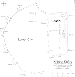 Khirbet Kefireh, also Khirbet Kefire, Khirbet el-Kefirah, is an archeological site just north of the Palestinian town of Qatanna, West Bank. It is situated atop a hill covering about 4-5 acres. It appears in the Survey of Western Palestine map compiled in the 1870s, and most Bible dictionaries identify it with the ancient town of Chephirah.[1][2]